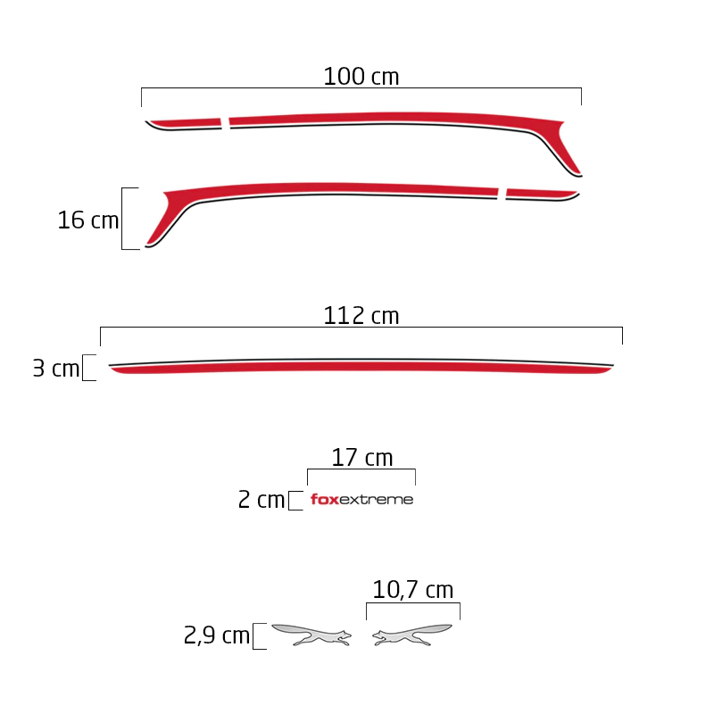 _x000D_Kit Completo Faixa Lateral/Traseira Fox Extreme 2008 Adesivo Vermelho com Filete Preto + Emblema Raposa Resinado -