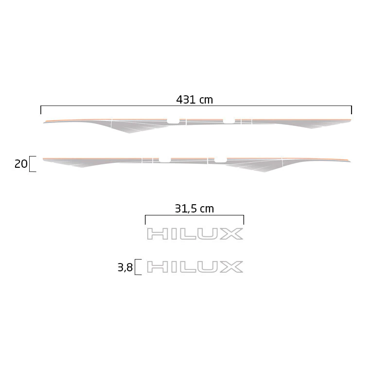 2 Emblemas Hilux (porta) / Fabricado em Vinil Transparente / Dimensões: 31,5 x 3,8 cm