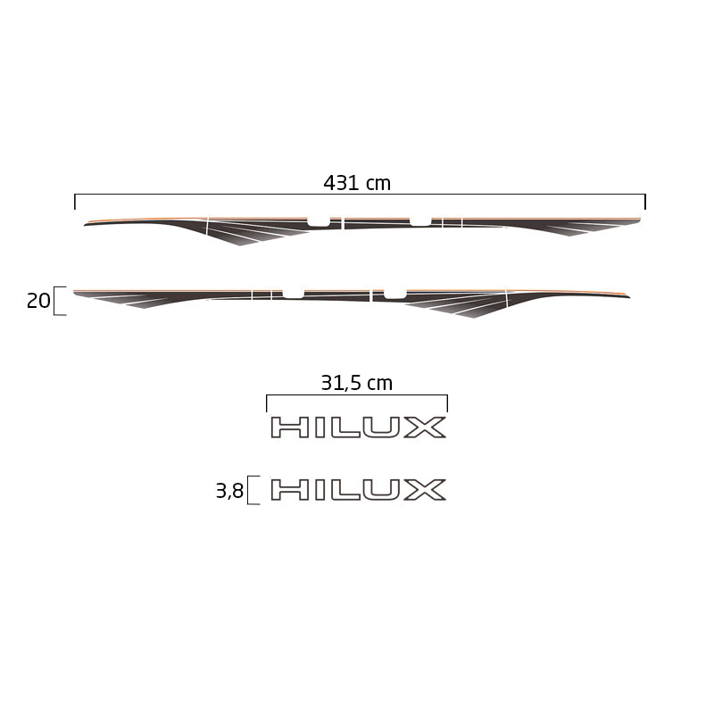 Quantidade: 1 Jogo completo de faixas para ambos os lados + 2 Emblemas Hilux