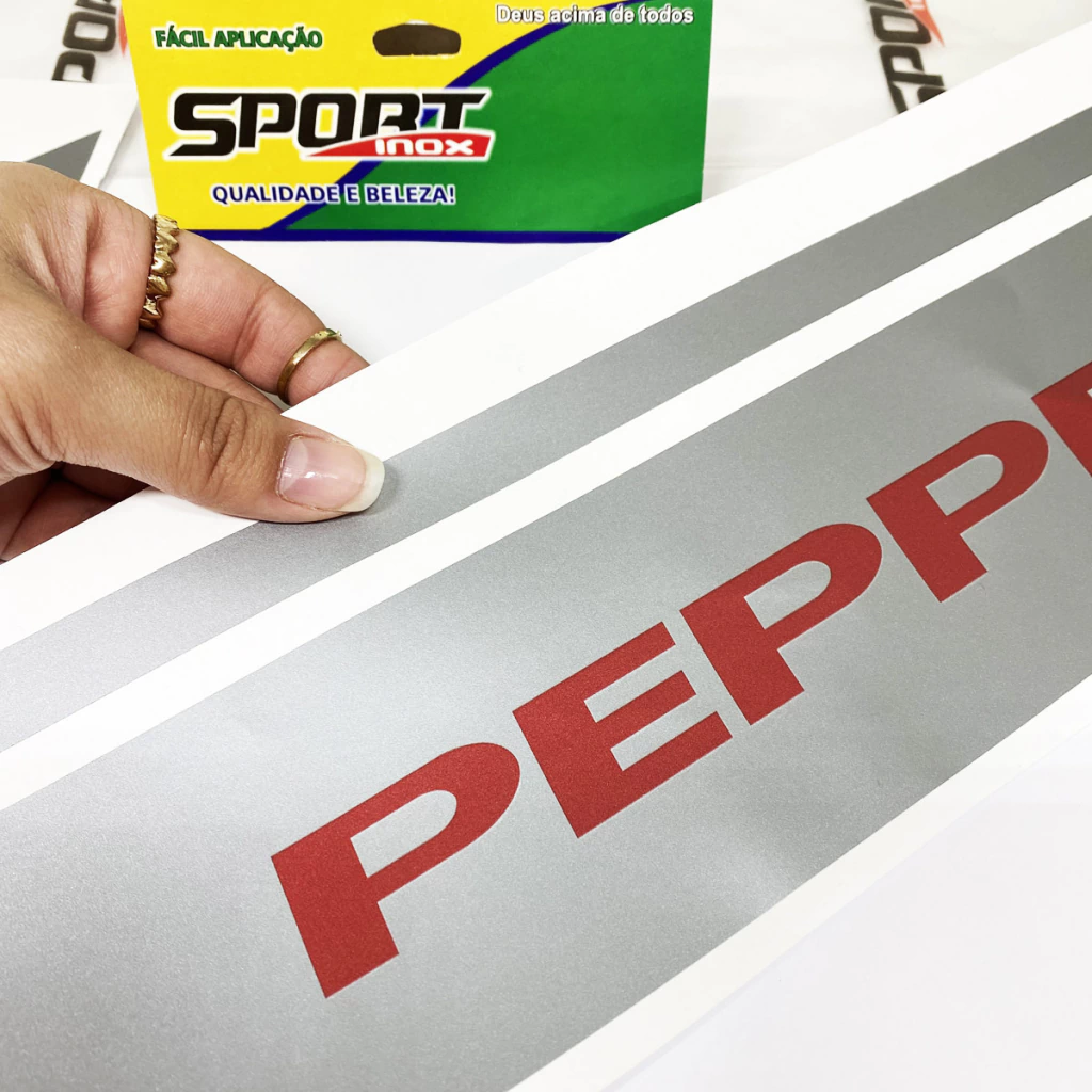 Faixa Lateral Pepper UP, Saveiro, Fox 2014 2015 2016 2017 2018 2019 2020 2021 2022 2023 Adesivo Texturizado Decorativo Cinza