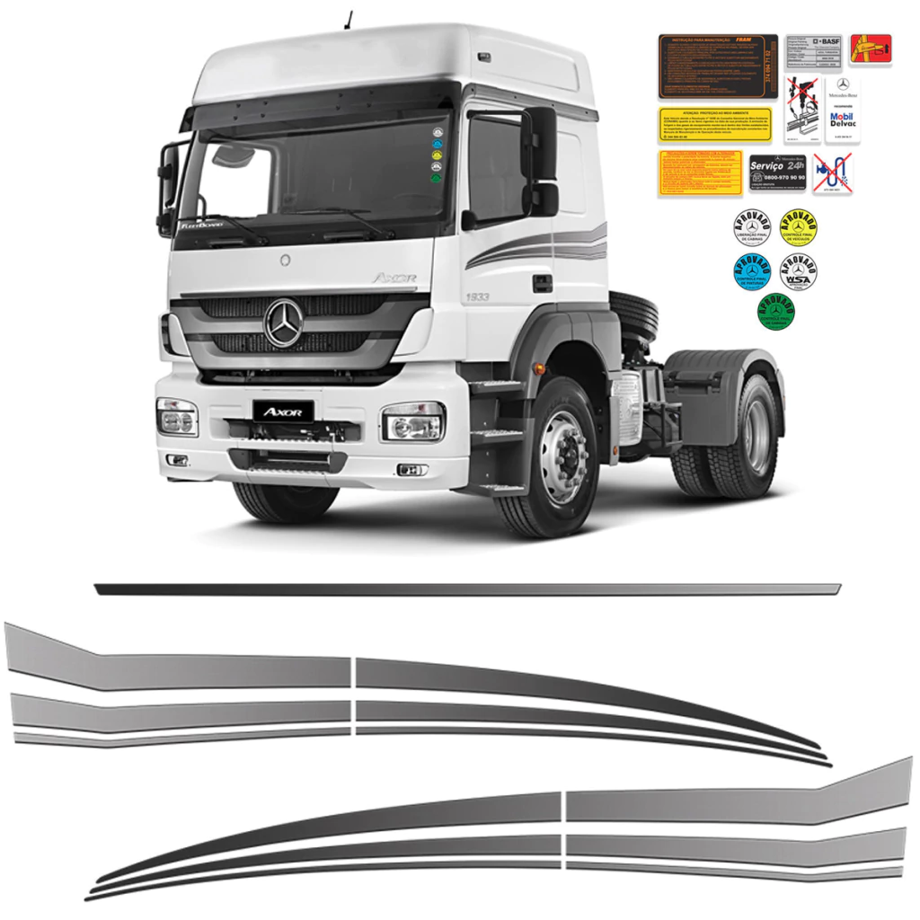 _x000D_Faixa Mb Axor 1933 2544 2644 2041 2536 2036 2019 Adesivo Lateral e Capô + Adesivos Etiquetas Advertência e Aprovado do Para-brisa -
