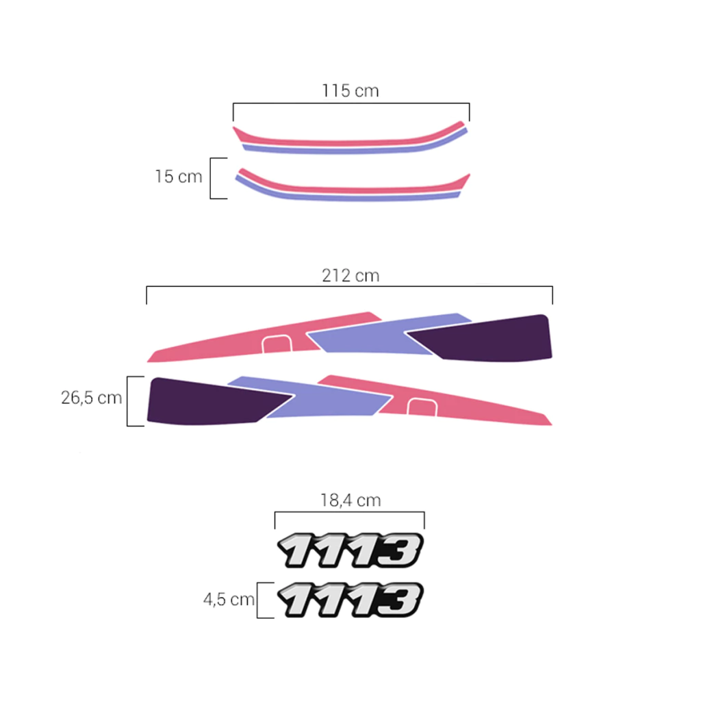 Jogo De Faixas Caminhão Mercedes Benz 1113 Adesivo Lateral + Emblemas Resinados