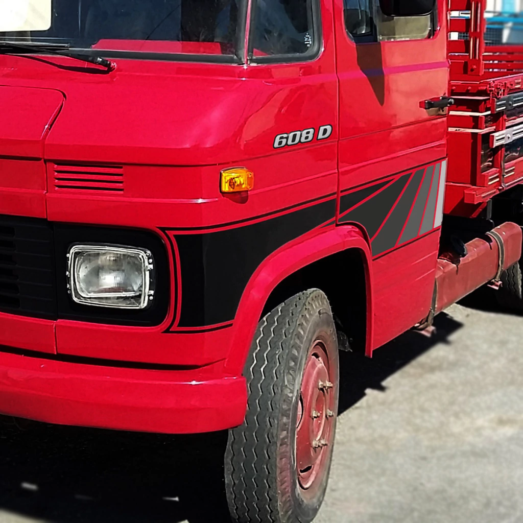 Kit Adesivos Completo Caminhão Mercedes Benz 608 D Faixa Lateral + Emblemas Resinados