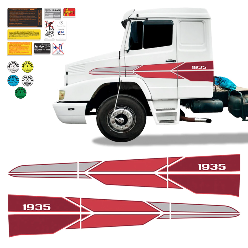 Jogo De Faixas Mercedes Benz 1935 Adesivo Lateral Vermelho Decorativo