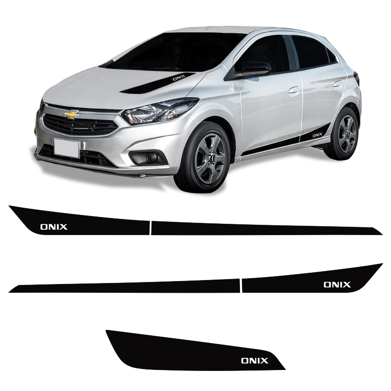 Kit Faixa Chevrolet Onix 2012 2013 2014 2015 2016 2017 2018 2019 Adesivo Lateral e Capô Decorativo