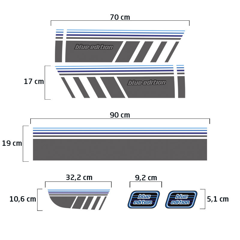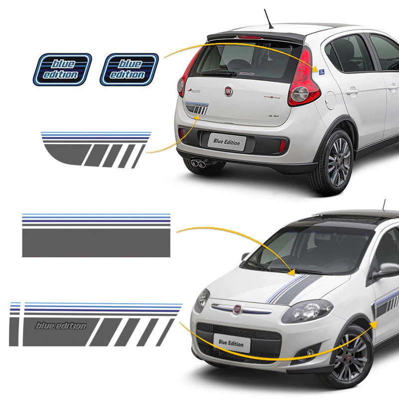 Faixa Do Capô, Lateral e Traseiro + 2 Emblemas Blue Edition + 4 Soleiras Resinadas + 4 Protetores Black Over