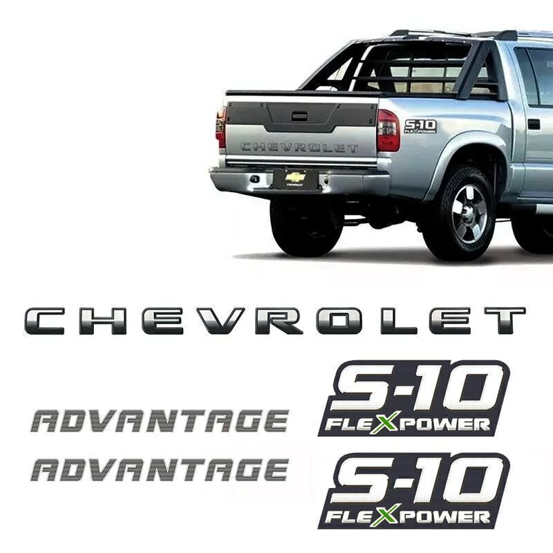 Kit Emblemas Advantage + Flex Power Verde + Faixa Traseira Chevrolet Preta