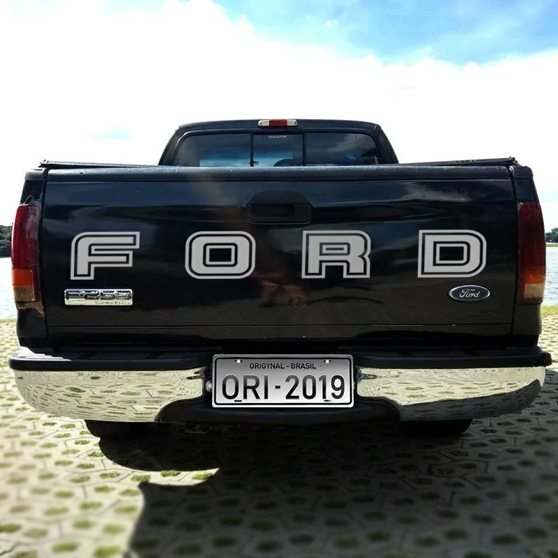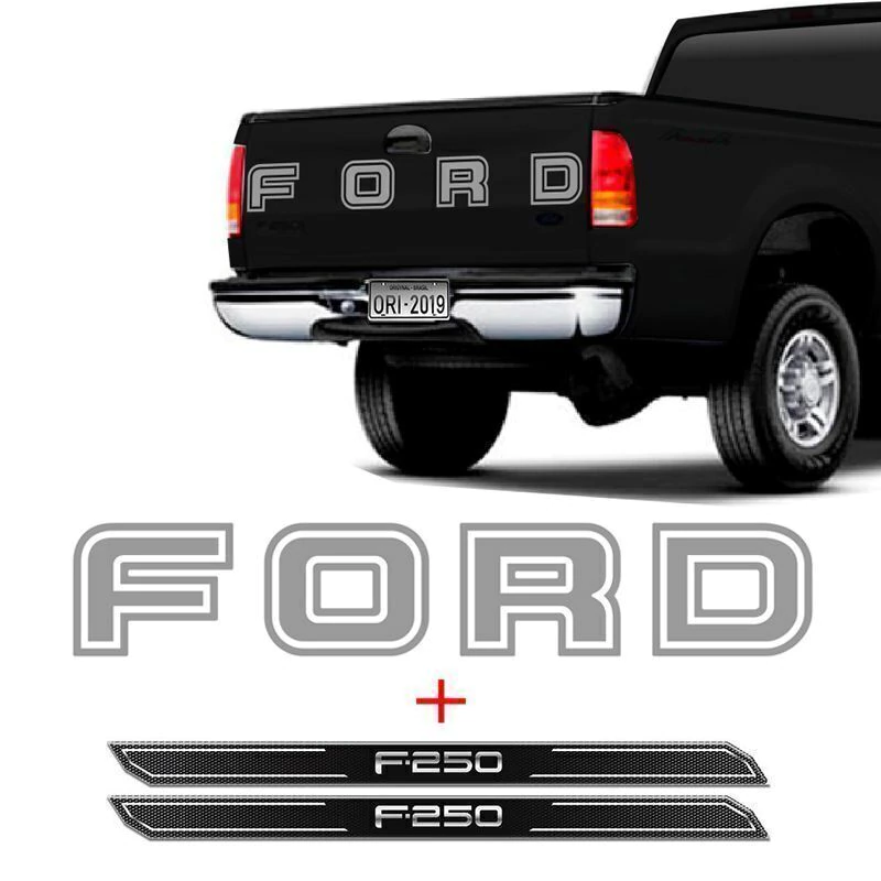 _x000D_Faixa Traseira Ford F-250 2 Portas 2004/2010 Adesivo cinza + Soleira Protetora