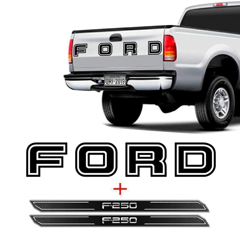 _x000D_Faixa Traseira Ford F-250 2 Portas 2004/2010 Adesivo Preto + Soleira Protetora