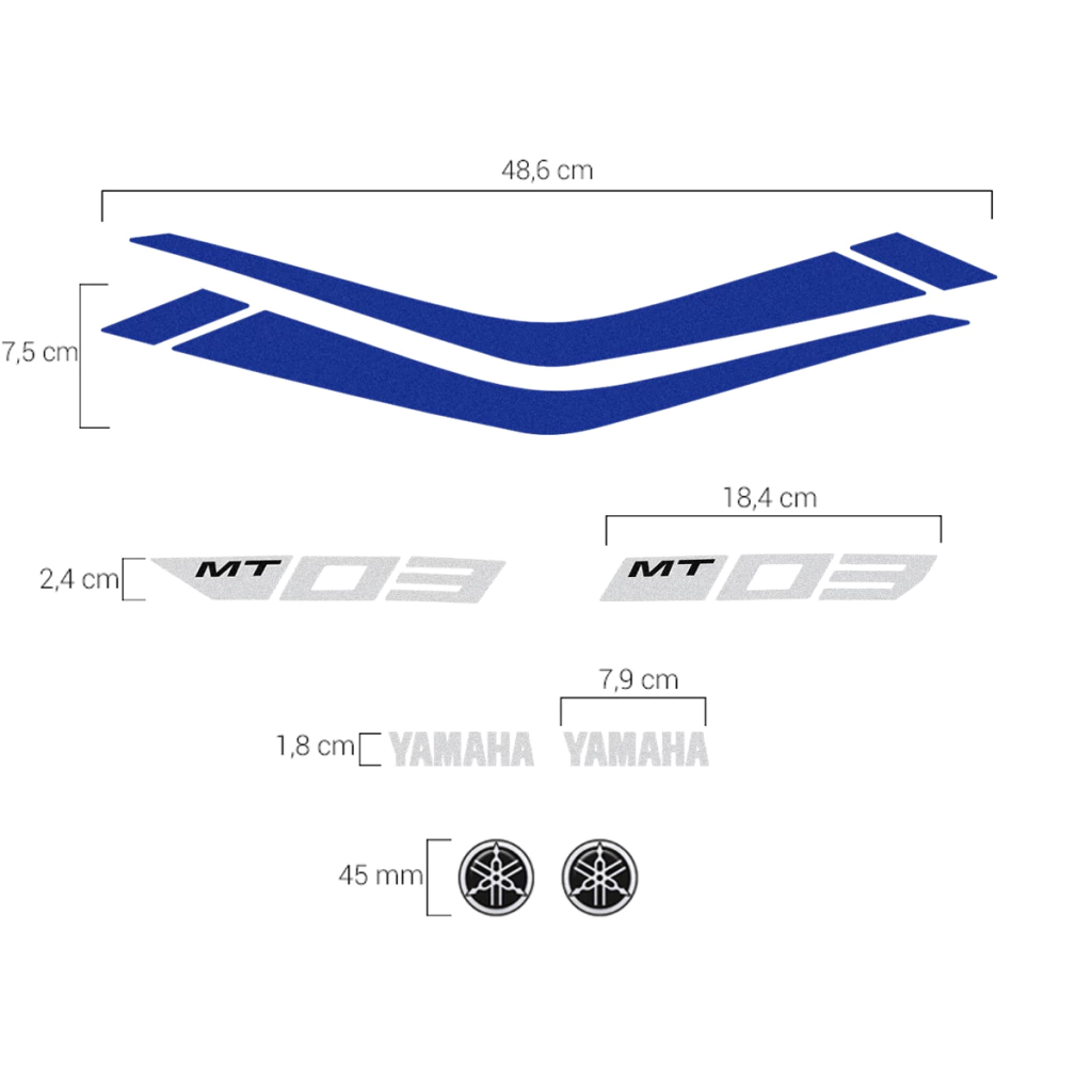 Kit Faixas Moto Yamaha Mt-03 2019/2020 Adesivos Refletivos e Logo Resinado