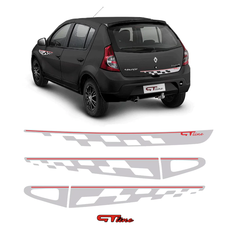 _x000D_Kit Faixas Sandero Gt Line 2008/2013 + Emblema Resinado - Adesivos Laterais e Traseiro Cinza