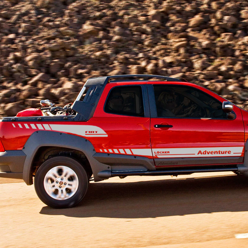 Faixa Lateral Fiat Strada Adventure Locker 2008 2009 2010 2011 2012 2013 Adesivo Cabine Dupla
