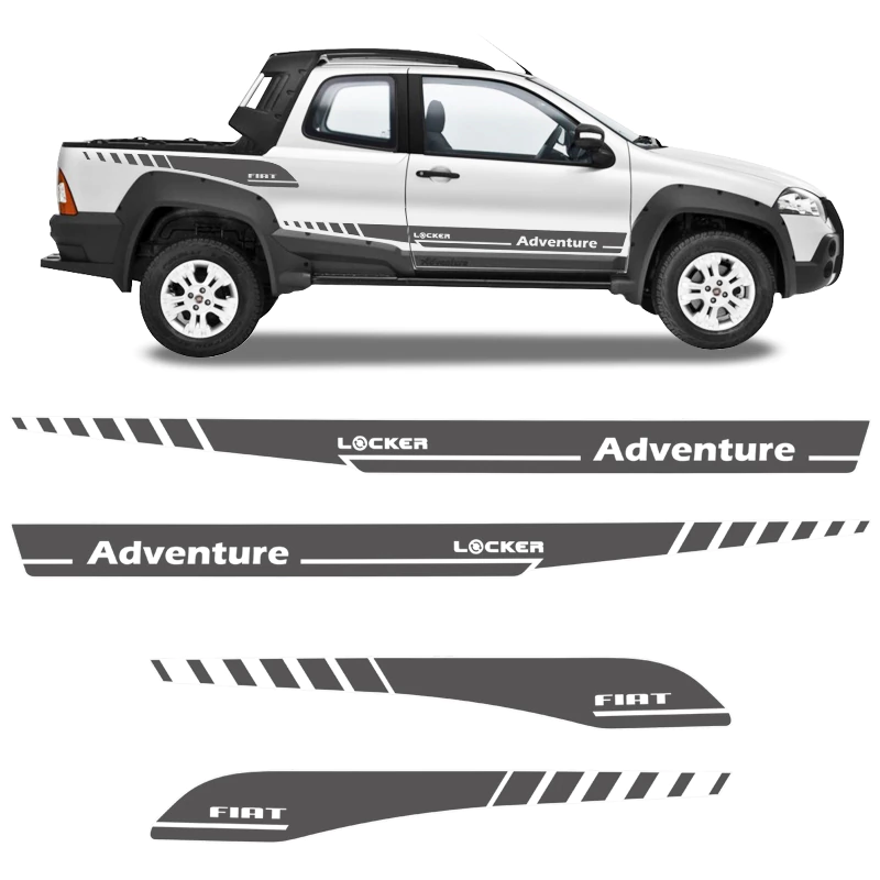 Faixa Lateral Fiat Strada Adventure Locker 2008 2009 2010 2011 2012 2013 Adesivo Cabine Dupla