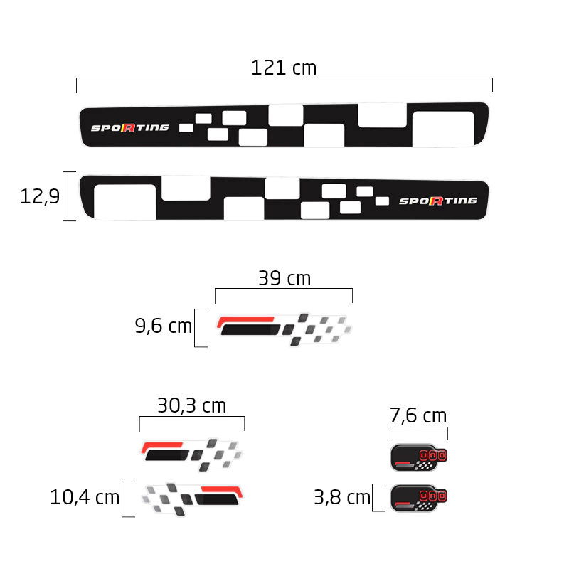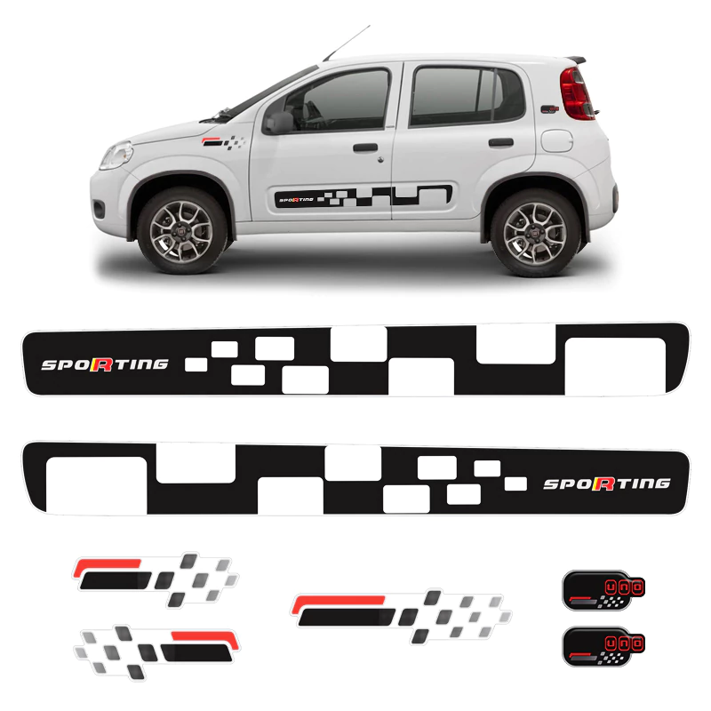 Faixas Uno Sporting Adesivos Lateral/Traseiro Preto Completo