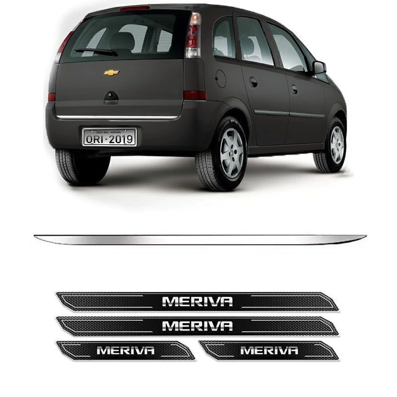 Soleira Da Porta Diamante Chevrolet Meriva Com Black Over + Friso Do Porta-Malas Cromado