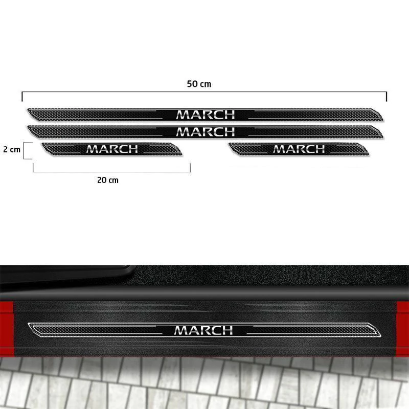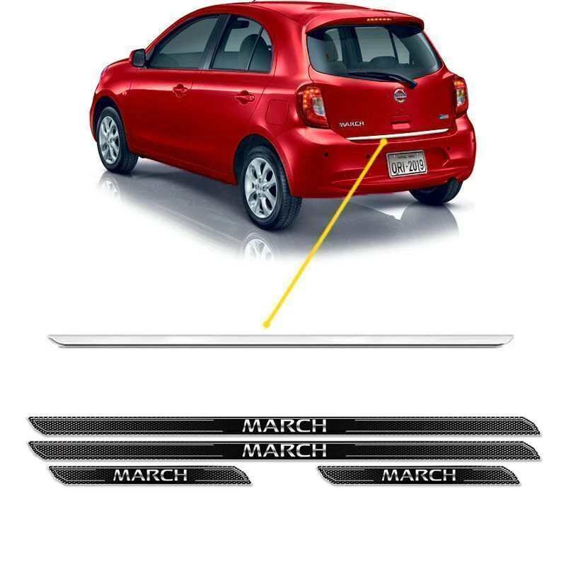 Kit Soleira Da Porta Diamante Nissan March 2015 Até 2020 Com Black Over + Friso Do Porta-Malas Cromado (Genérico)