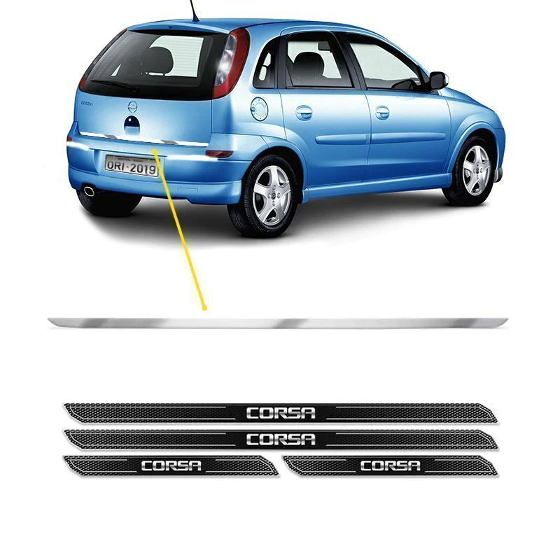 Soleira Da Porta Diamante Chevrolet Corsa Hatch 2010 em diante Com Black Over + Friso Do Porta-Malas Cromado