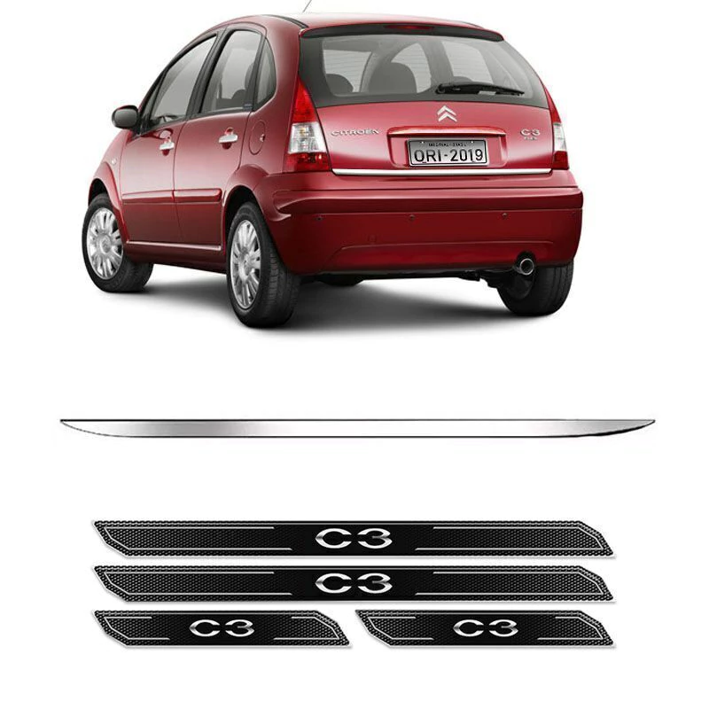 Soleira Da Porta Diamante Citroen C3 Com Black Over + Friso Do Porta-Malas Cromado
