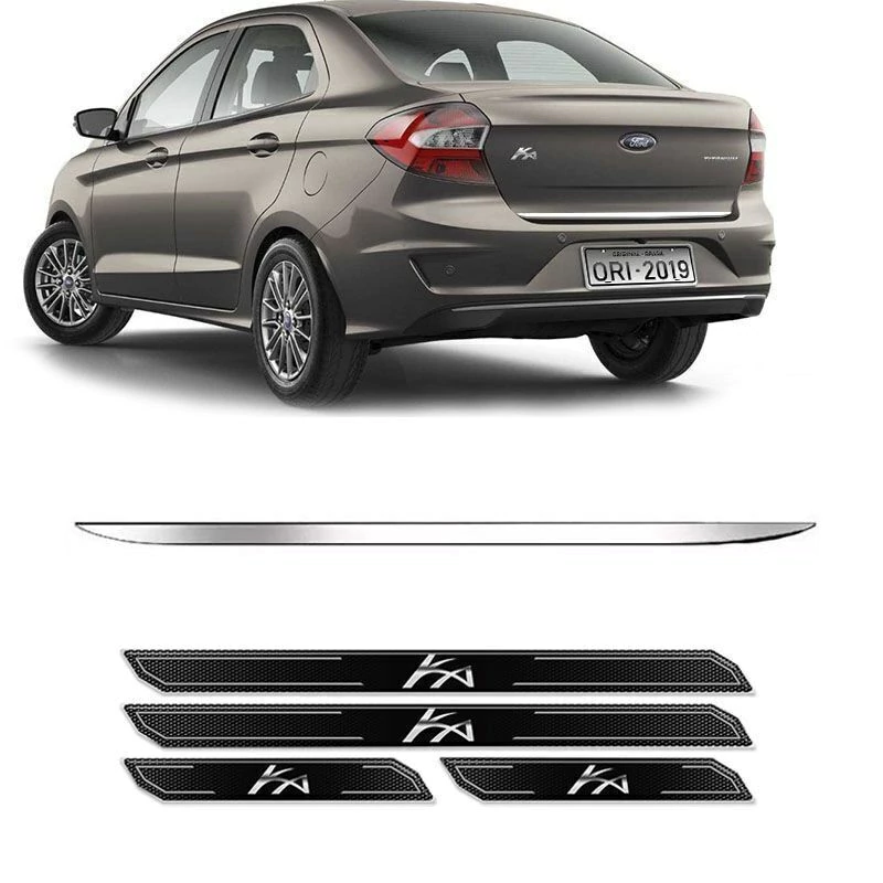 Soleira Da Porta Diamante Ford KA Sedan 2015 Em Diante Com Black Over + Friso Do Porta-Malas Cromado