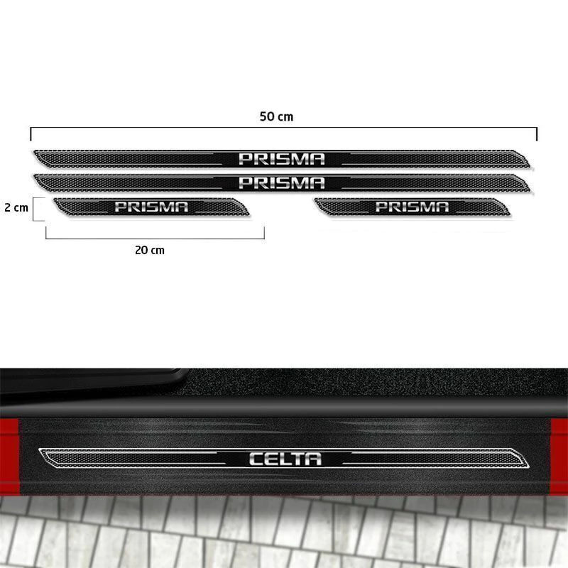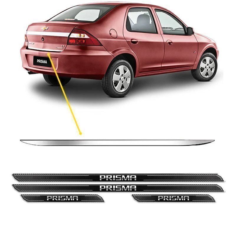 Soleira Da Porta Diamante Chevrolet Prisma Até 2012 Com Black Over + Friso Do Porta-Malas Cromado