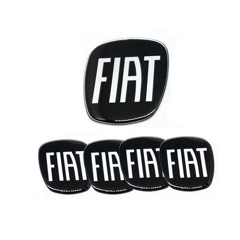 4 Adesivos para a Roda Fiat Mobi / Fabricado em Poliéster Escovado / Dimensões: 3,4 x 3,8 cm
