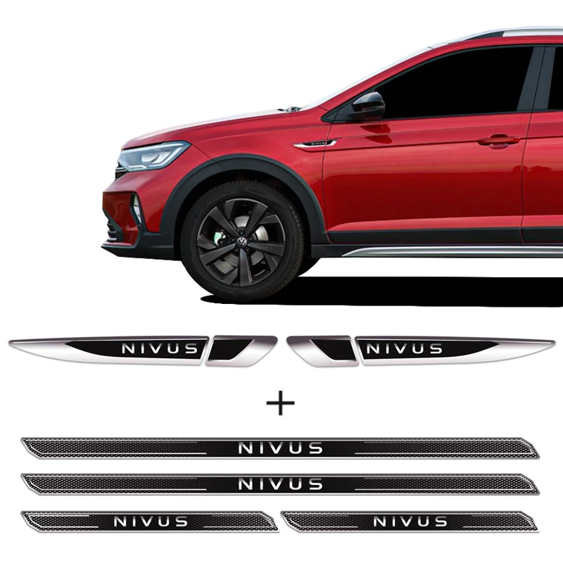 Kit Adesivos Resinados Volkswagen Nivus 2020 2021 Aplique Lateral + Soleira Da Porta Com Proteção Black Over