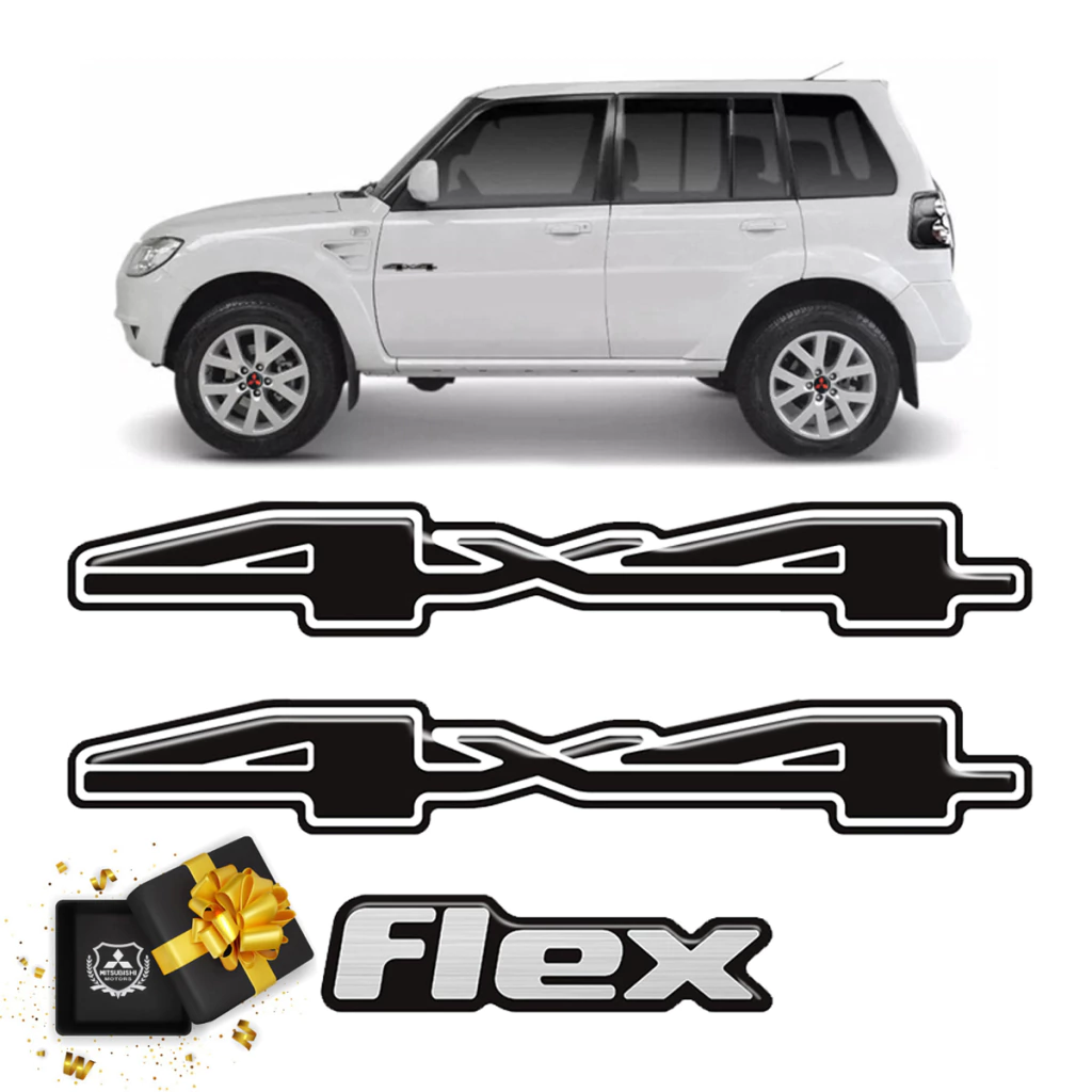 Kit Emblemas Flex 4x4 Pajero TR4 Adesivo Mitsubishi Resinado -