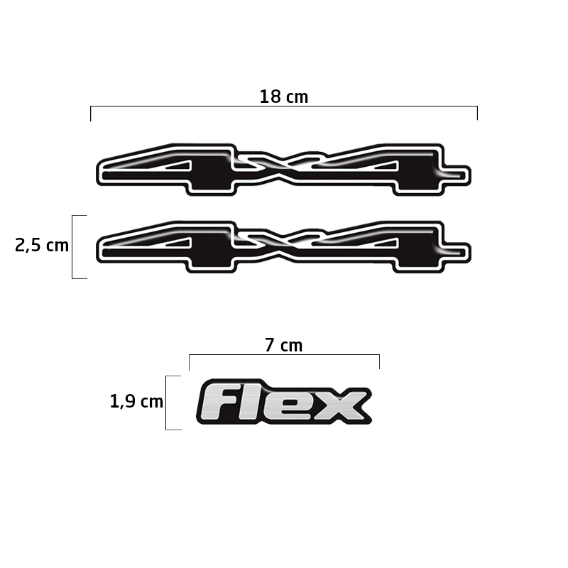 2 Adesivos 4x4 Resinados (lateral) / Fabricado em Vinil / Dimensões: 18 x 2,5 cm