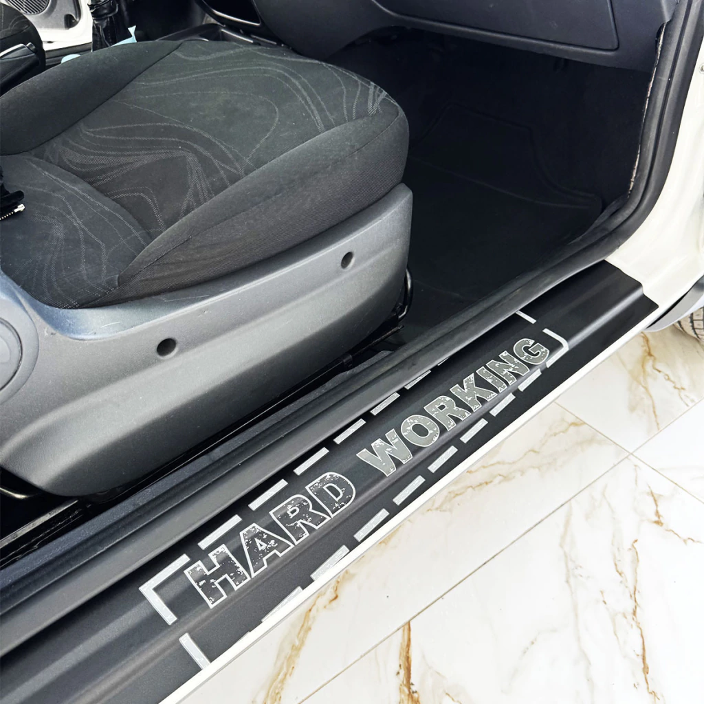 Kit Aplique Soleiras + Adesivos Hard Working Traseiro e Laterais Compatível Com Fiat Strada 2014 2015 2016 2017 2018 2019 Adesivo Preto Lixa - Genérico