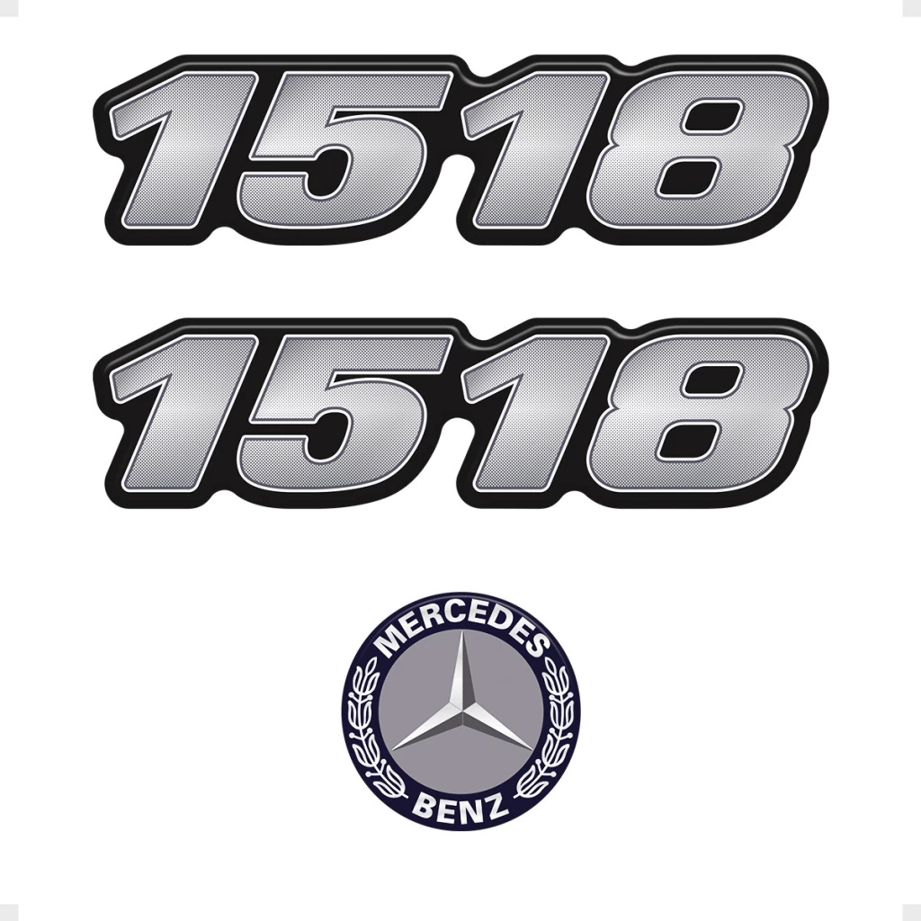 Par Adesivos 1518 Lateral E Logo Mercedes Benz Compatível Com Mercedes Benz 1518 Moderno Emblema Lateral Resinado Cromado - Genérico