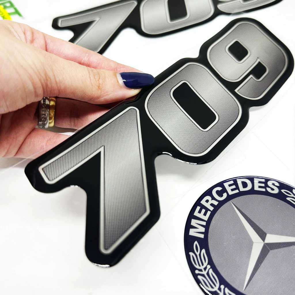 Kit Adesivos 709 Plus Faixa Lateral E Logo Mercedes Benz + Emblema Advertências Aprovado Compatível Com Mercedes Benz 709 Moderno Emblema Lateral Resinado Cromado - Genérico