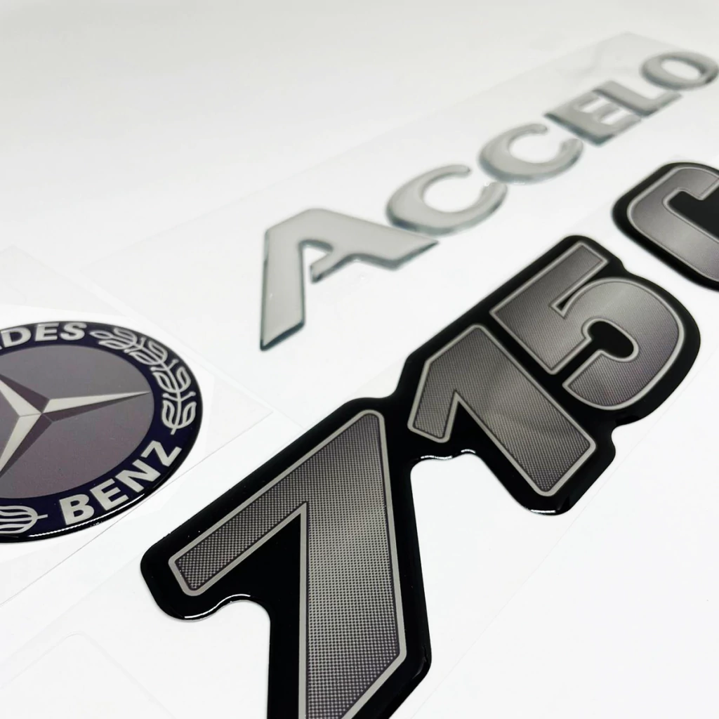 Kit Adesivos 715 C Lateral + Emblema Capô Accelo E Logo Mercedes Benz Compatível Com Mercedes Benz 715 C Moderno Emblema Lateral E Capô Resinado Cromado - Genérico