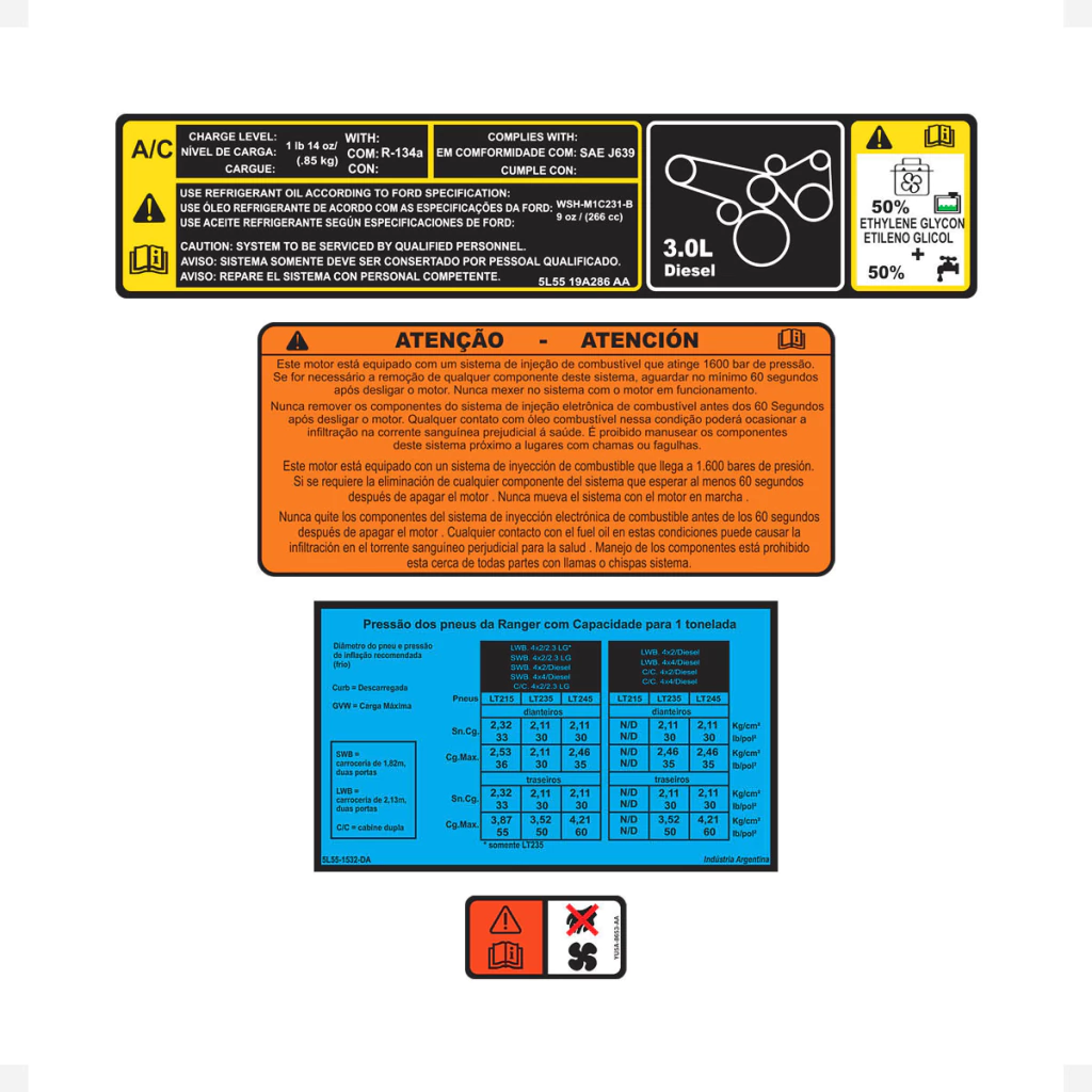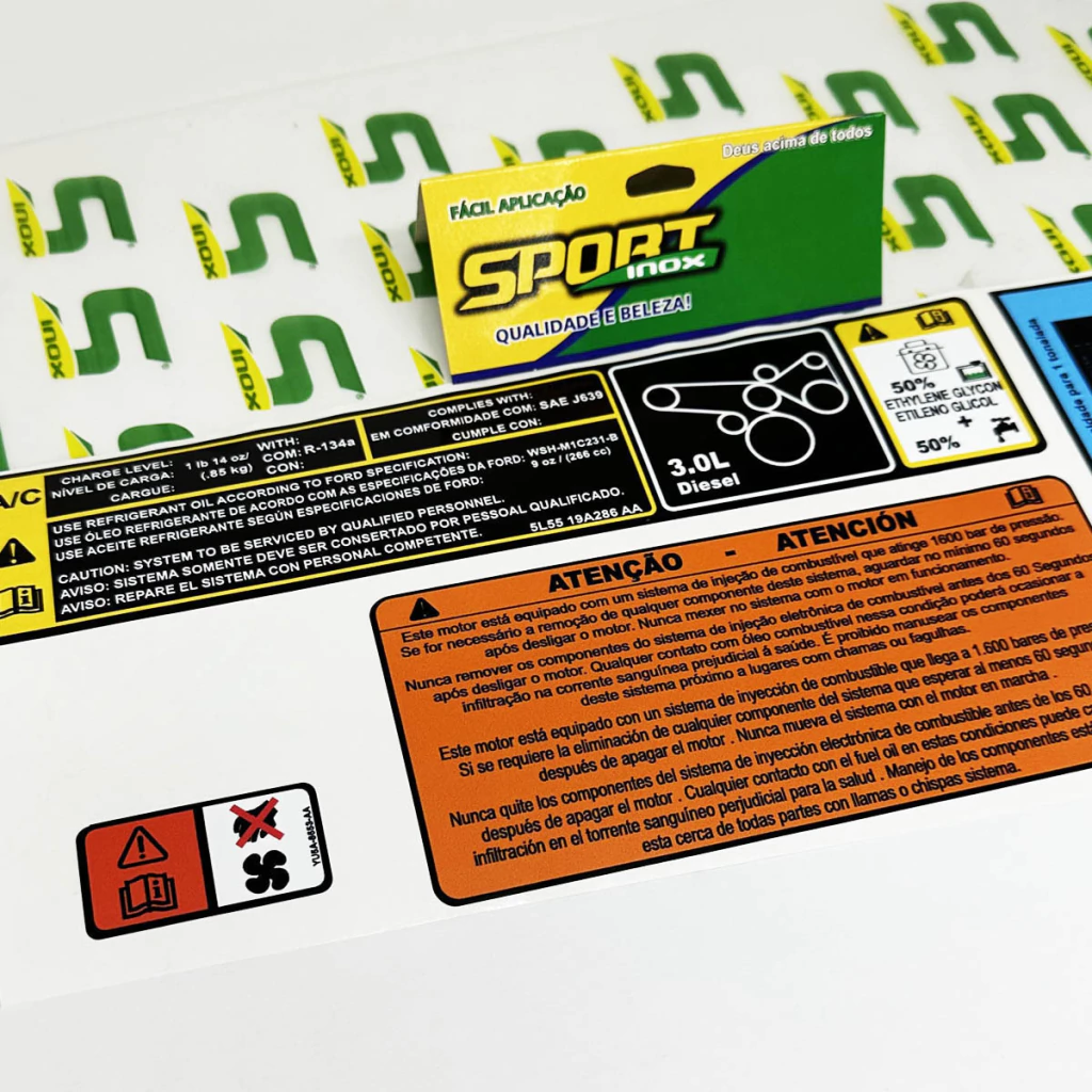 Kit Adesivos Advertência Cofre Motor Compatível Ranger Diesel 3.0 2010 Etiquetas - Genérico