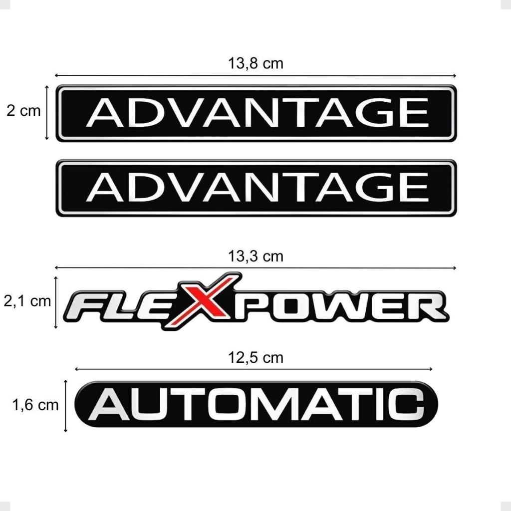 2 Adesivos Advantage / Fabricado em Poliéster Cromado / Dimensões: 12,8 x 2 cm