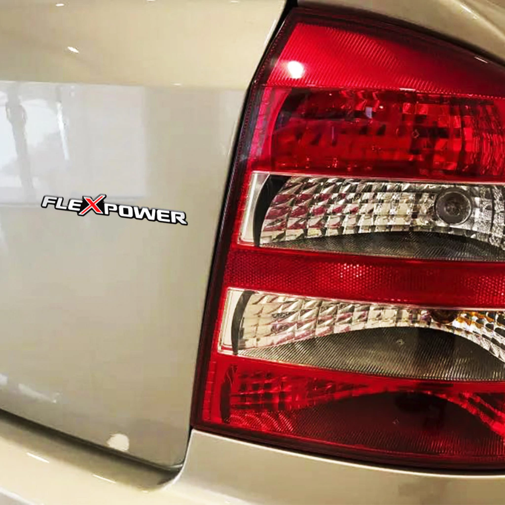 1 Adesivo Flex Power / Fabricado em Poliéster Cromado / Dimensões: 13,3 x 2,1 cm