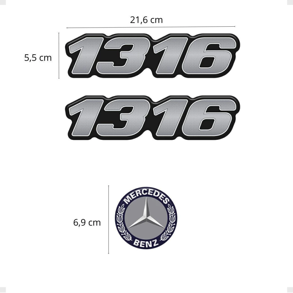 Kit Adesivos Logo Frontal Mercedes Benz + 1316 Lateral Compatível Com Mercedes Benz 1316 Moderno Emblema Cromado Resinado - Genérico