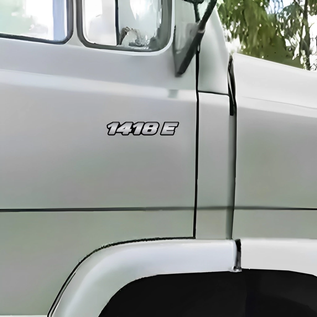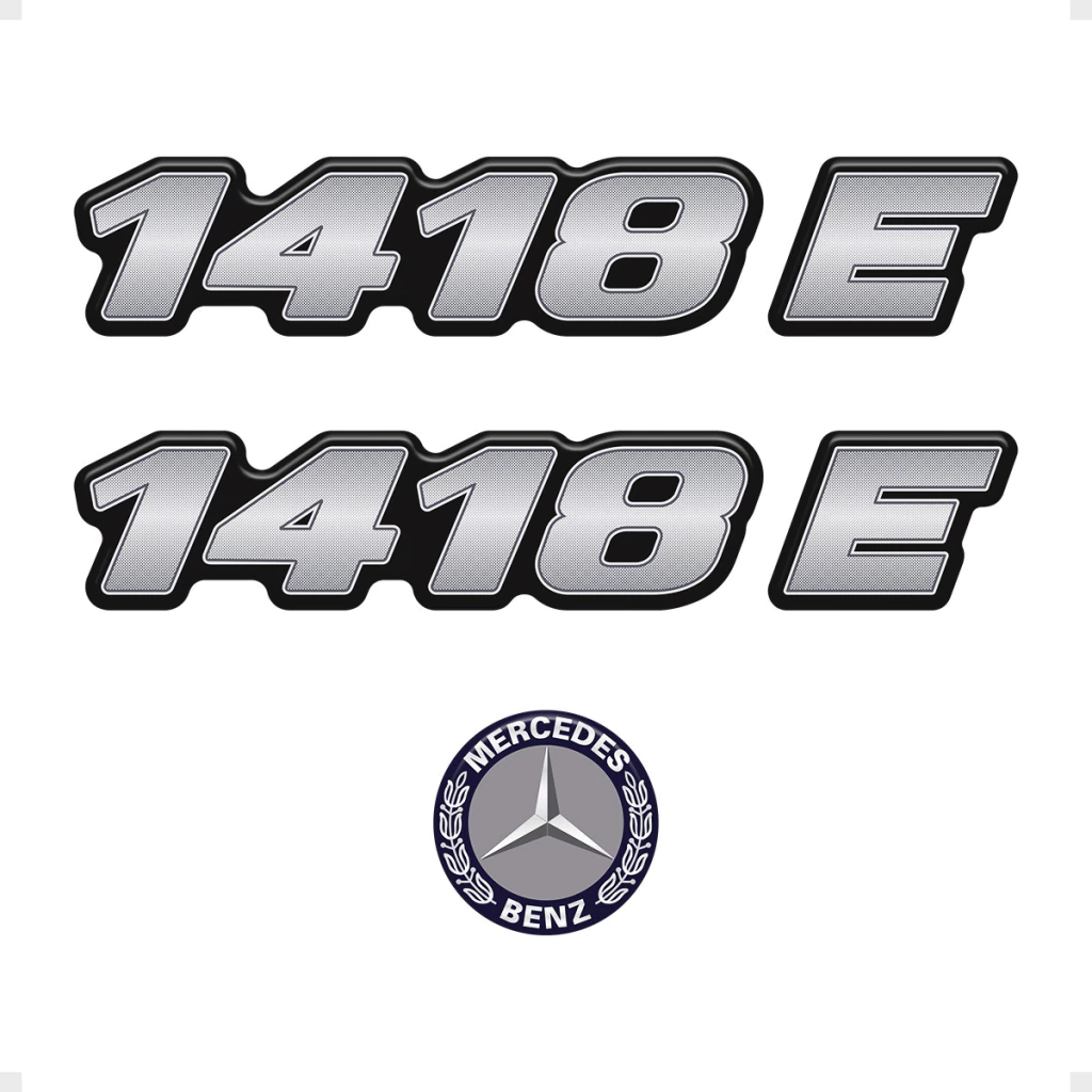 Kit Adesivos Logo Frontal Mercedes Benz + 1418E Lateral Compatível Com Mercedes Benz 1418E Moderno Emblema Cromado Resinado - Genérico