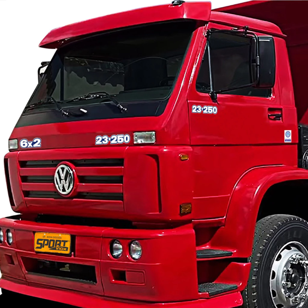 Kit Adesivos Compatível Com Volkswagen 23-250 E 6x2 Capô, 23-250 + MWM Lateral + Etiquetas Advertências Emblemas Resinados Cromados Azul E Branco - Genérico
