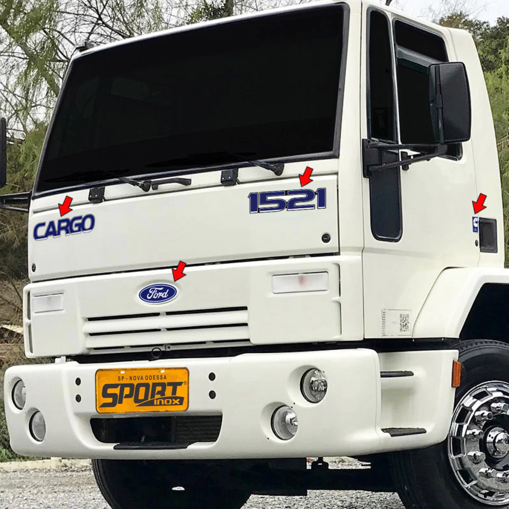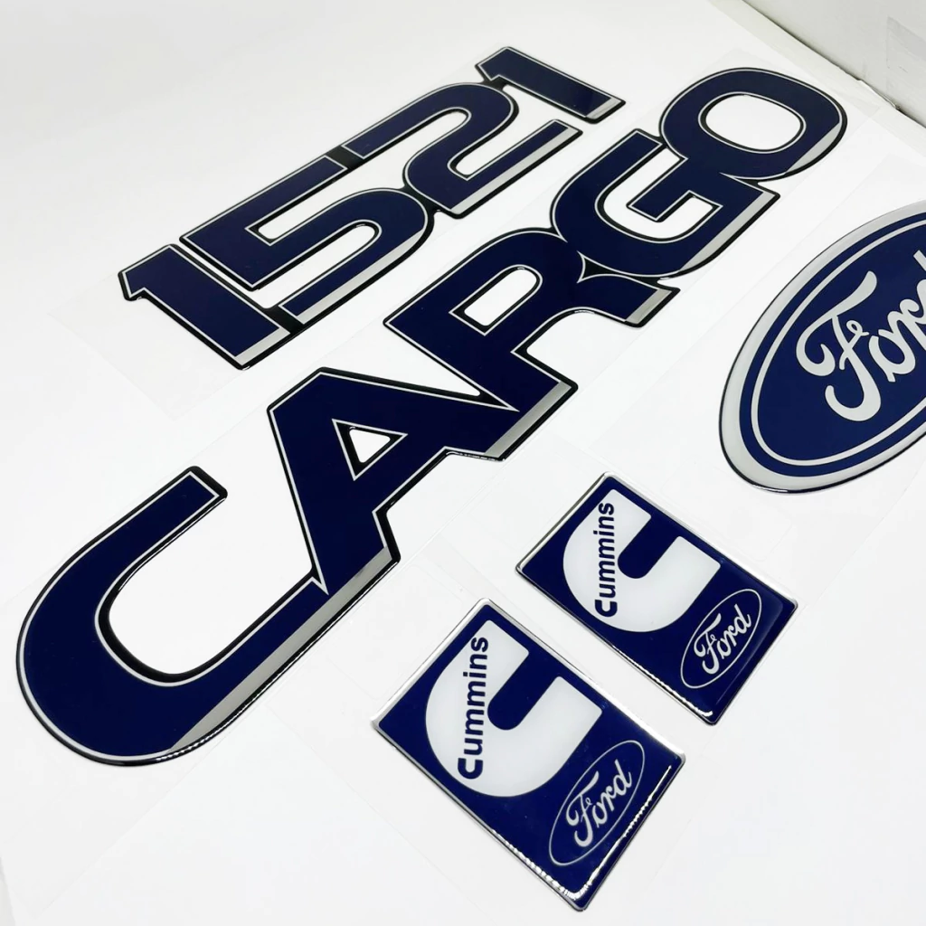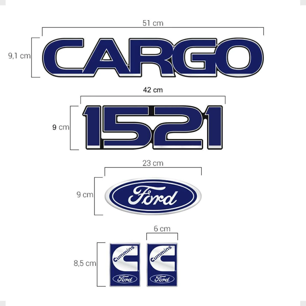 Kit Adesivos Cargo 1521 E Ford Capô, Cummins Lateral E Etiquetas Advertências Compatível Com Ford Cargo 1521 Emblemas Resinados Cromados Azul - Genérico