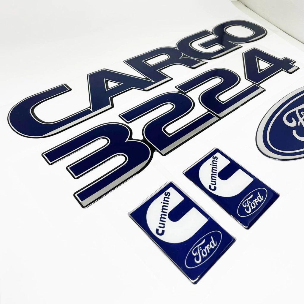 Kit Adesivos Cargo 3224 E Ford Capô, Cummins Lateral E Etiquetas Advertências Compatível Com Ford Cargo 3224 Emblemas Resinados Cromados Azul - Genérico