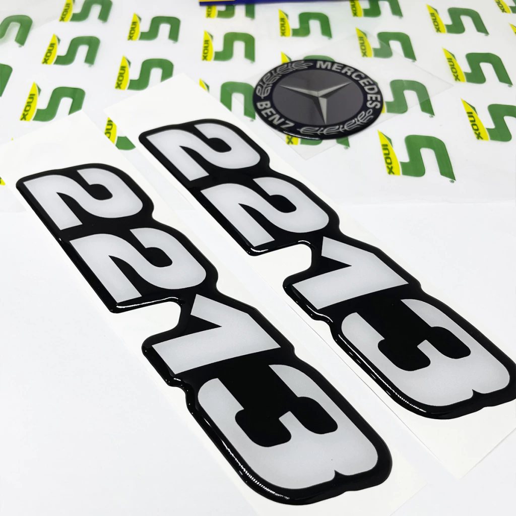 Kit Adesivos 2213 Lateral + Logo MB Frontal Compatível Com Mercedes Benz 2213 Antigo Emblema Lateral Resinado - Genérico