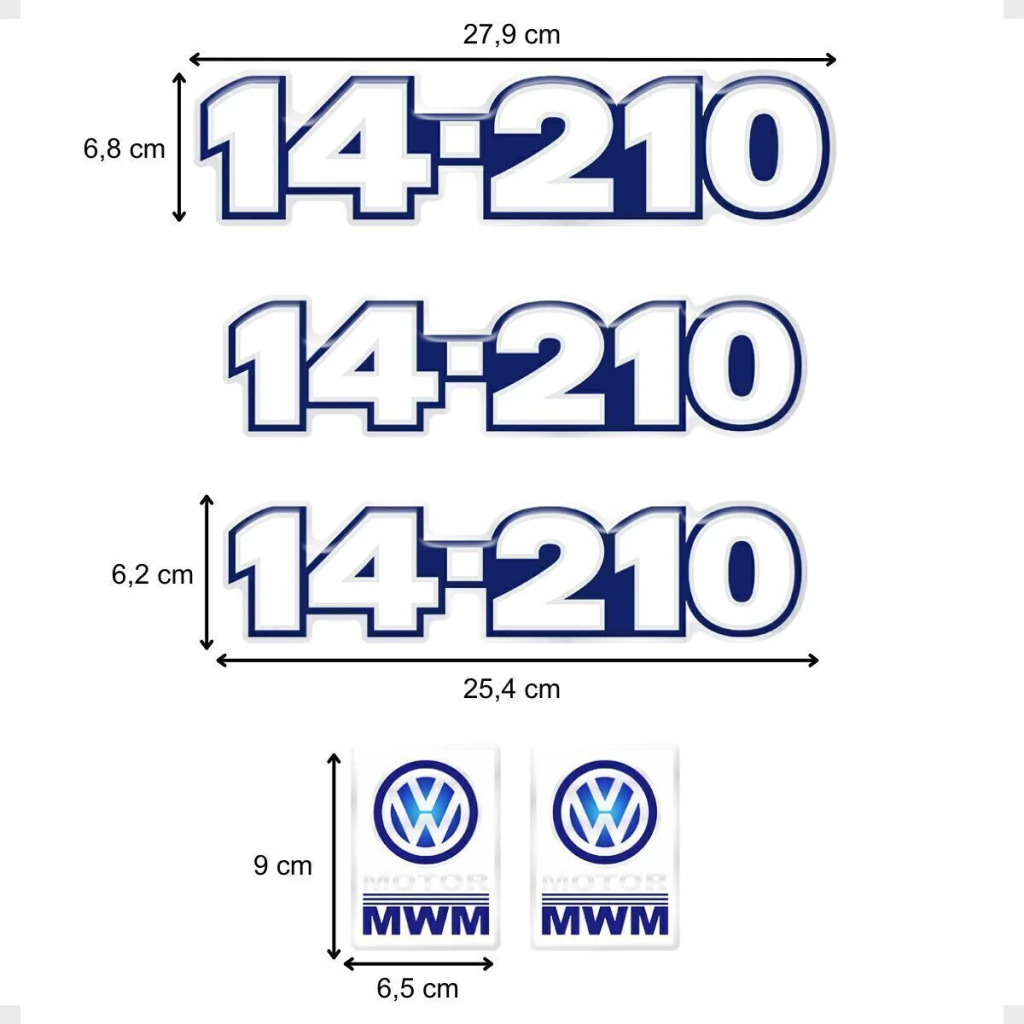 Kit Adesivos Compatível Com Volkswagen 14-210 Capô, 14-210 + MWM Lateral + Etiquetas Advertências Emblemas Resinados Cromados Azul E Branco - Genérico