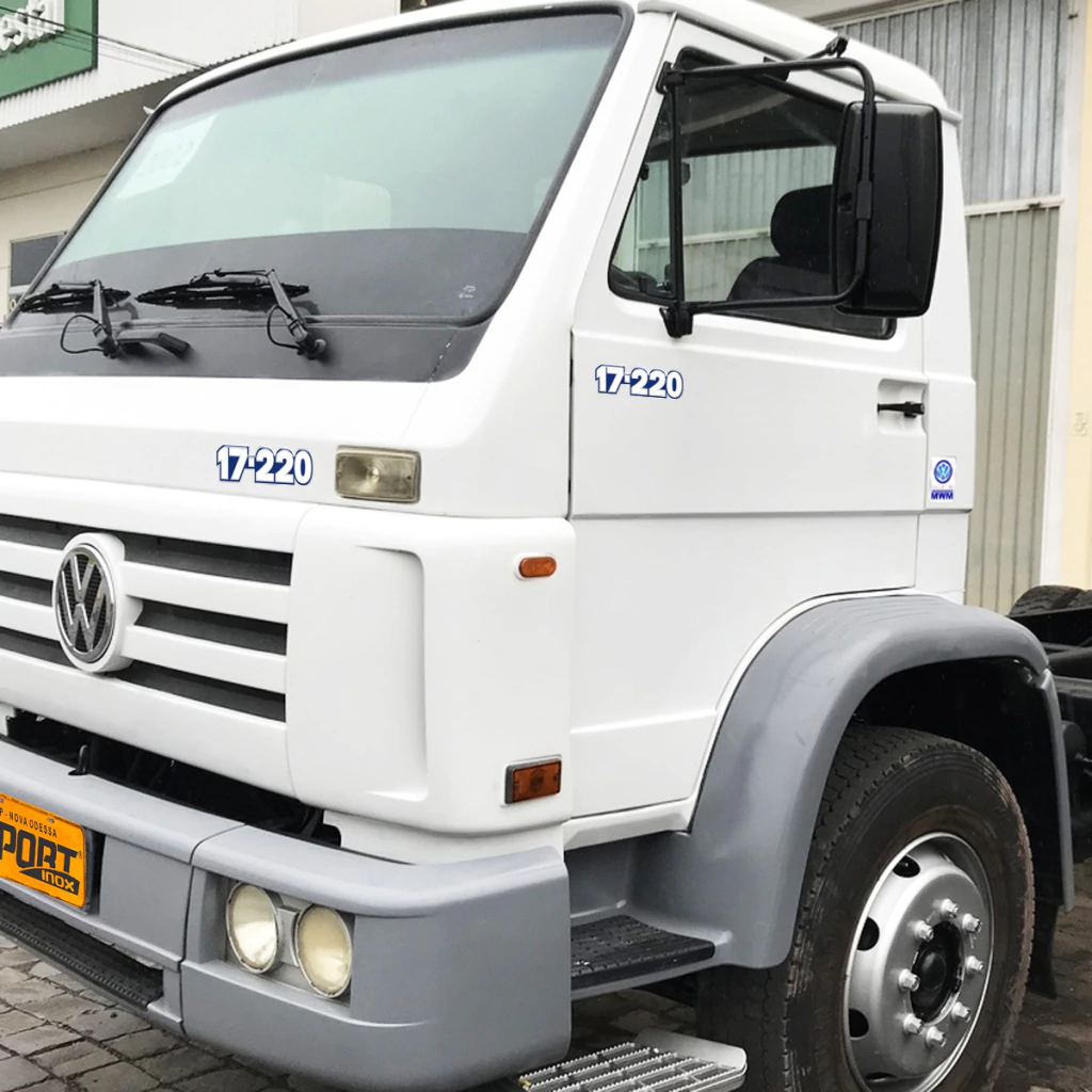 Kit Adesivos Compatível Com Volkswagen 17-220 Capô, 17-220 + Cummins Lateral + Etiquetas Advertências Emblemas Resinados Cromados Azul E Branco - Genérico