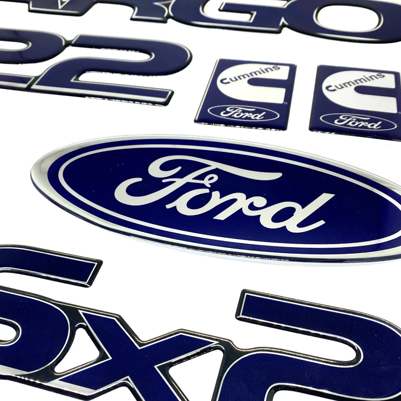 1 Emblema Ford Resinado (frontal) / Fabricado em Poliéster Cromado / Dimensões: 23 x 9 cm
