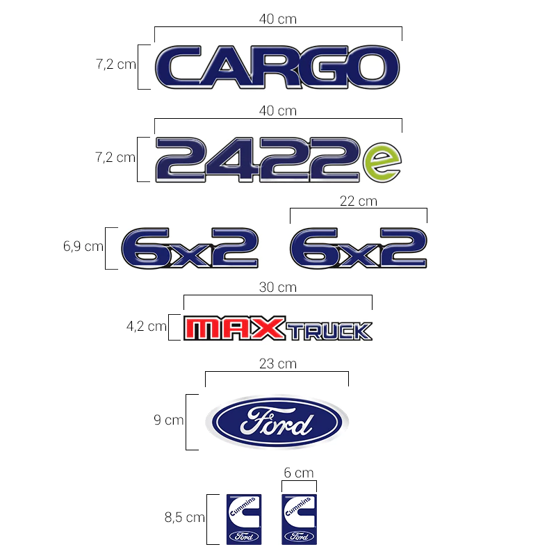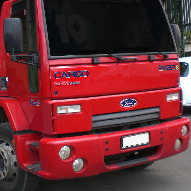 Kit Adesivos Cargo 2422e 6x2 Max Truck Cummins Emblemas Resinados Caminhão Ford + Etiquetas Advertência/Atenção Amarelo - Completo