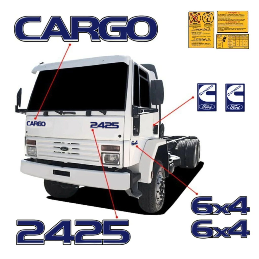 Kit Adesivos Cargo 2425 6x4 Cummins Emblemas Resinados Caminhão Ford + Etiquetas Advertência/Atenção Amarelo - Completo