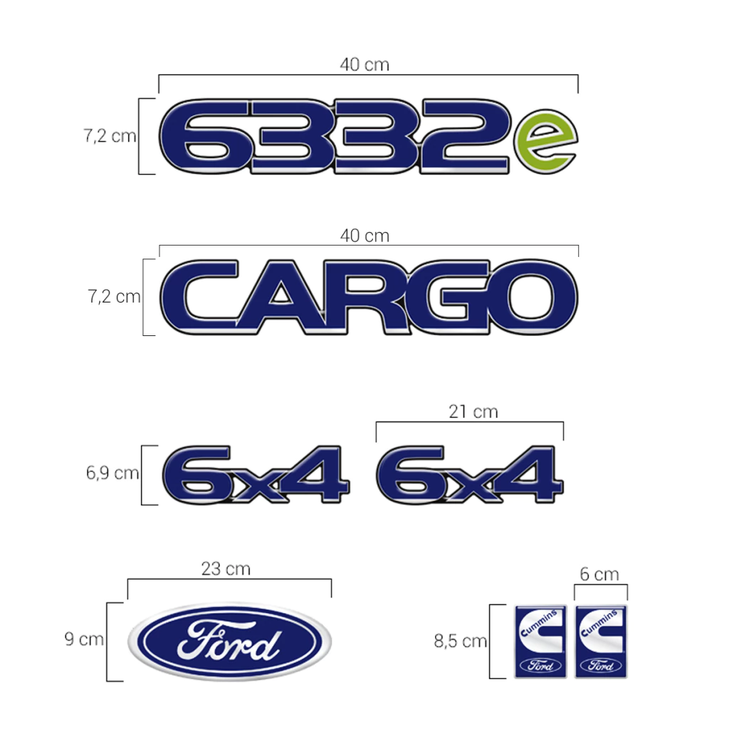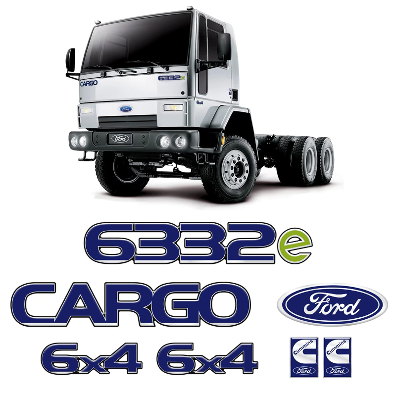Kit Adesivos Caminhão Ford Cargo 6332e Cummins 6x4 Emblemas Resinados -