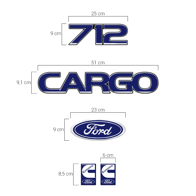 Kit Adesivos Caminhão Ford Cargo 712 Cummins Emblemas Resinados -