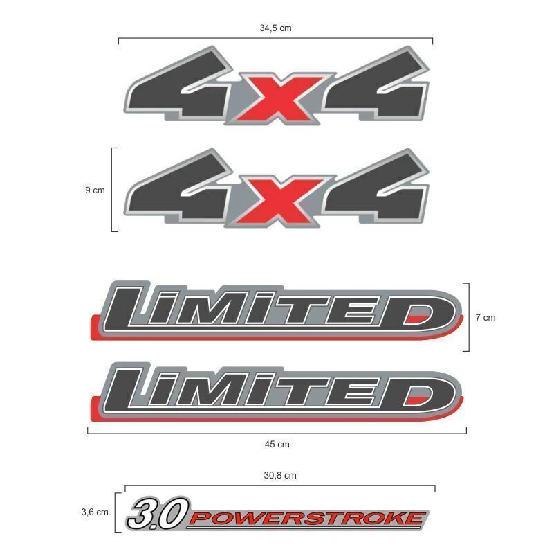_x000D_Kit Adesivos Ranger 2010/2012 Prata Limited 4x4 3.0 Powerstroke