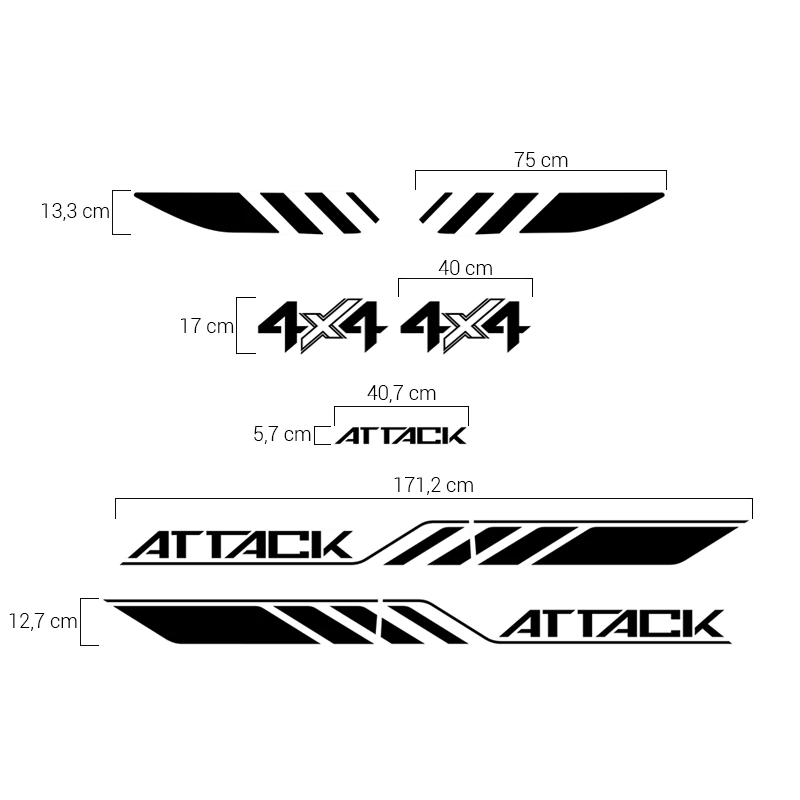 Kit Adesivos Nissan Frontier Attack 4x4 2021/ Preto - Adesivo Lateral, Traseiro, 4x4 e Capô.